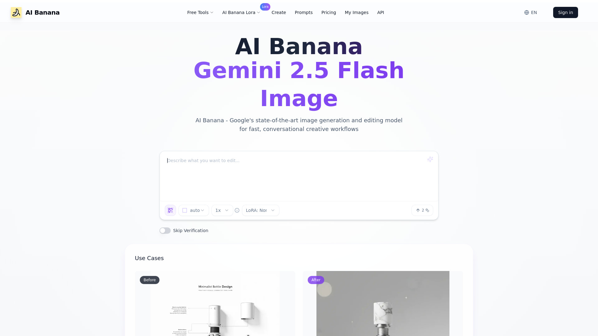 Nano Banana is an AI-powered image editor using Gemini 2.5 Flash technology for fast, consistent editing. It serves both amateur and professional users with an intuitive interface for professional-grade results.