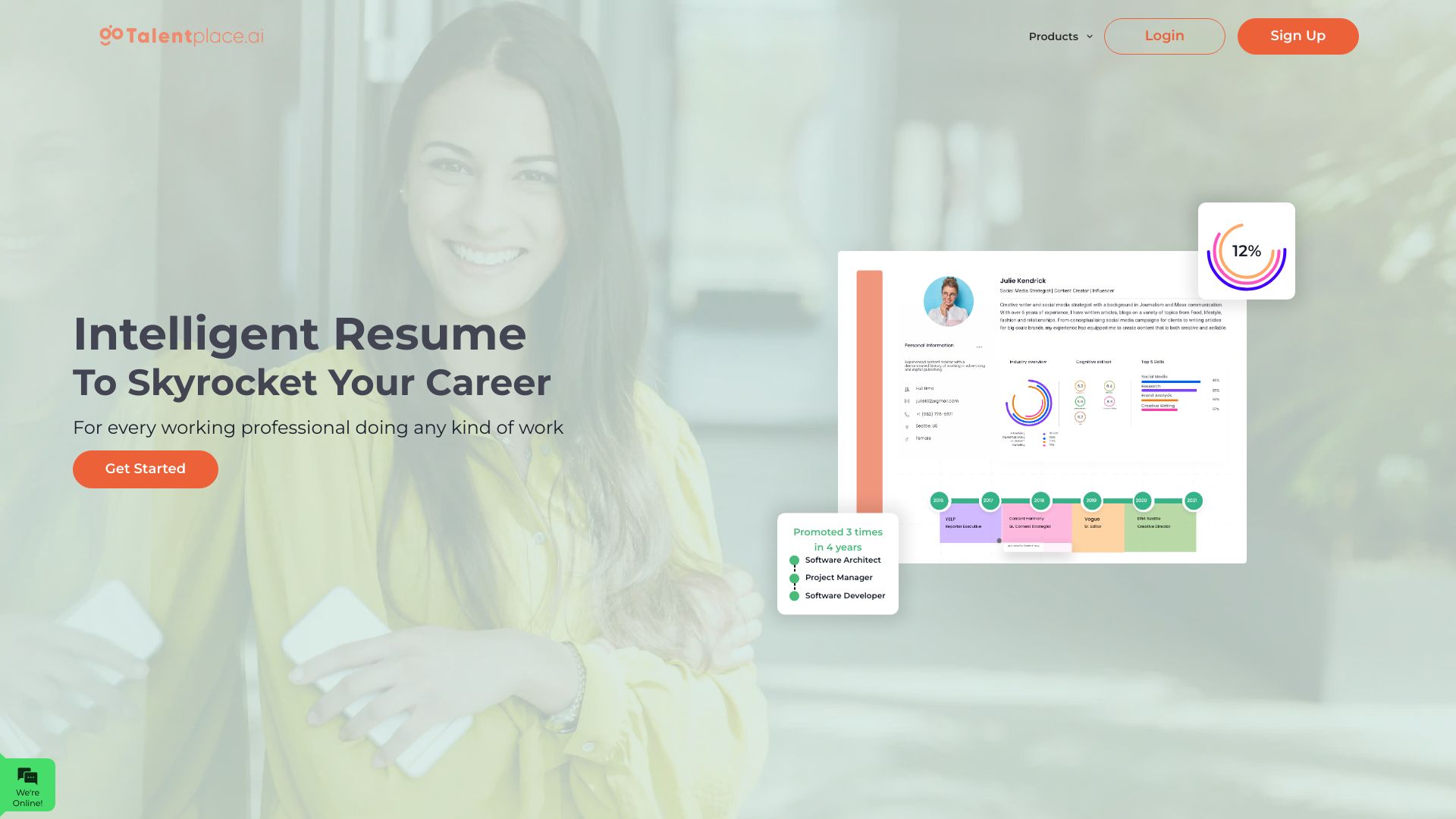 TalentPlace is a data-driven career platform revolutionizing professional development through compelling resume creation and career growth insights. It bridges job seekers and employers with personalized recommendations and advanced analytics.