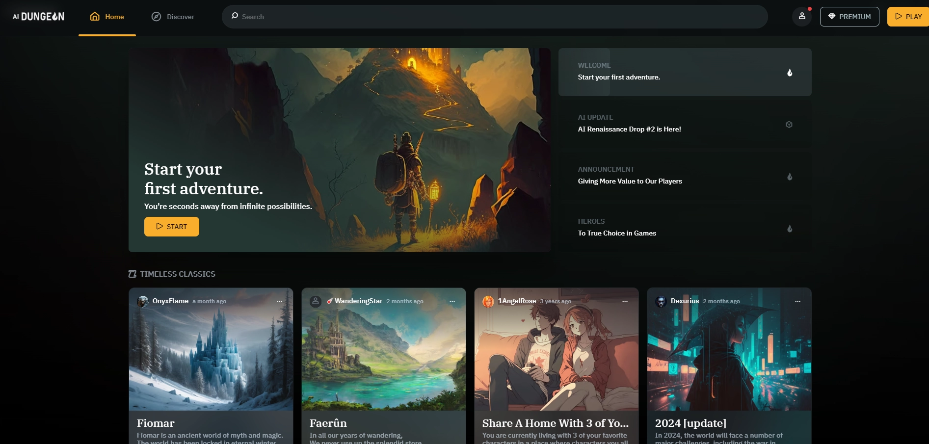 AIDungeon is an AI-powered text-based adventure platform that creates dynamic narratives responding to your commands. Experience unique stories across multiple genres with real-time AI adaptation.