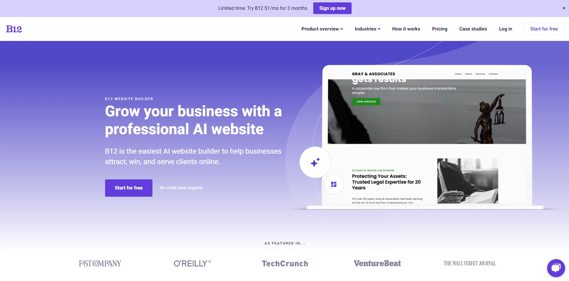 B12.io is an AI-powered website builder that helps professional service providers create stunning online presences. It combines intuitive design with integrated business tools to establish websites that attract clients and streamline operations.