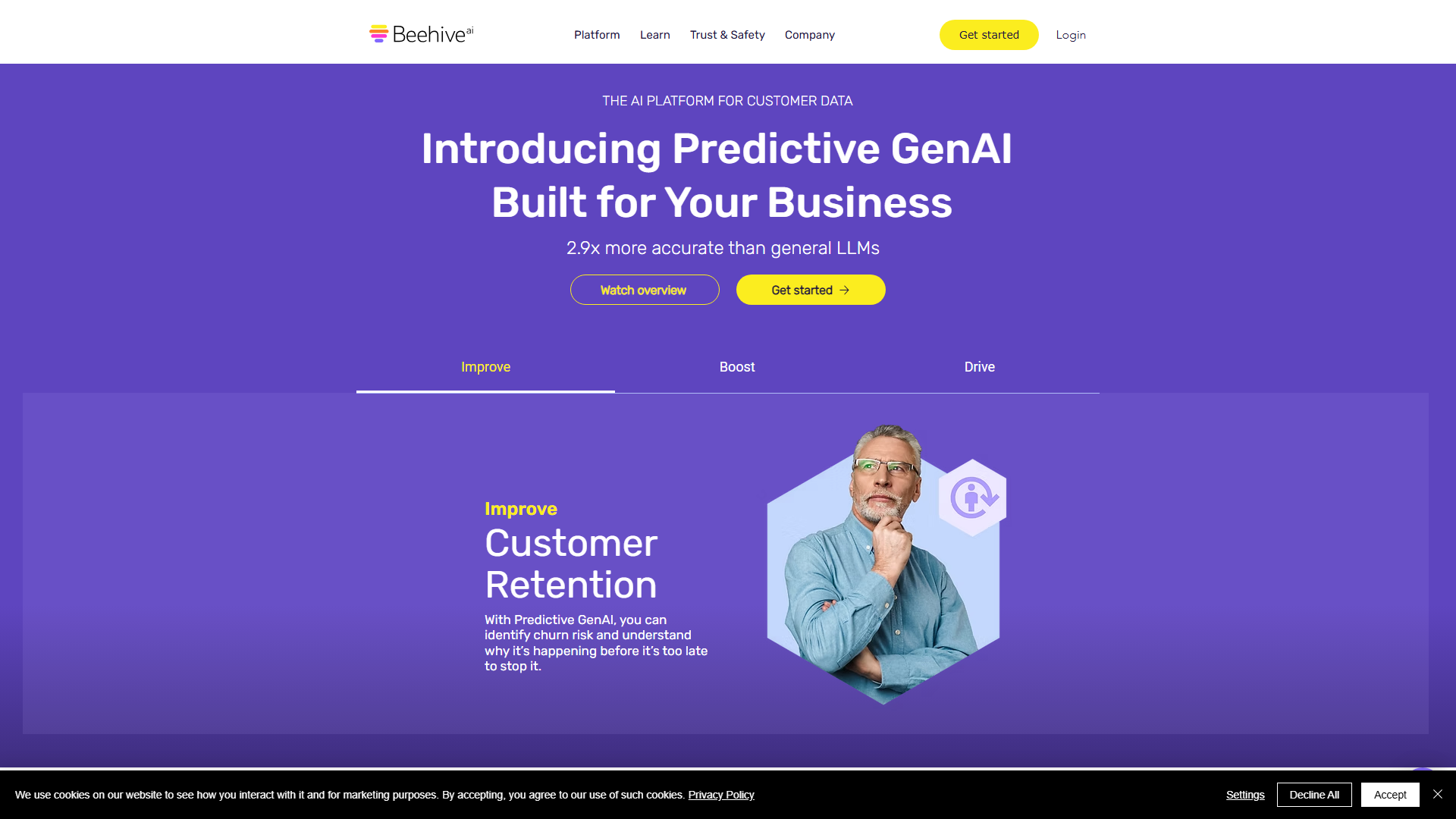 Beehive AI is a cutting-edge platform that transforms complex data into actionable business intelligence using advanced generative AI and machine learning to analyze datasets and uncover deep consumer insights.