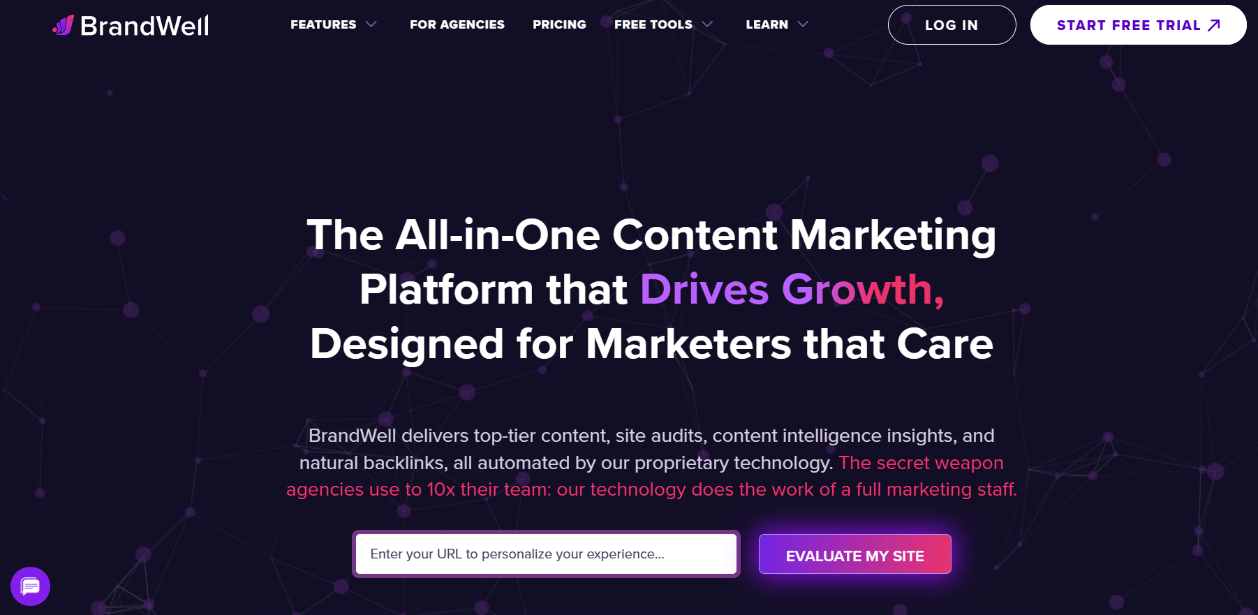 BrandWell AI is an all-in-one content marketing solution that automates SEO-optimized content creation, from ideation to publication. It provides AI-driven insights for audience resonance, driving engagement and conversions, and enhances site visibility through backlink generation.