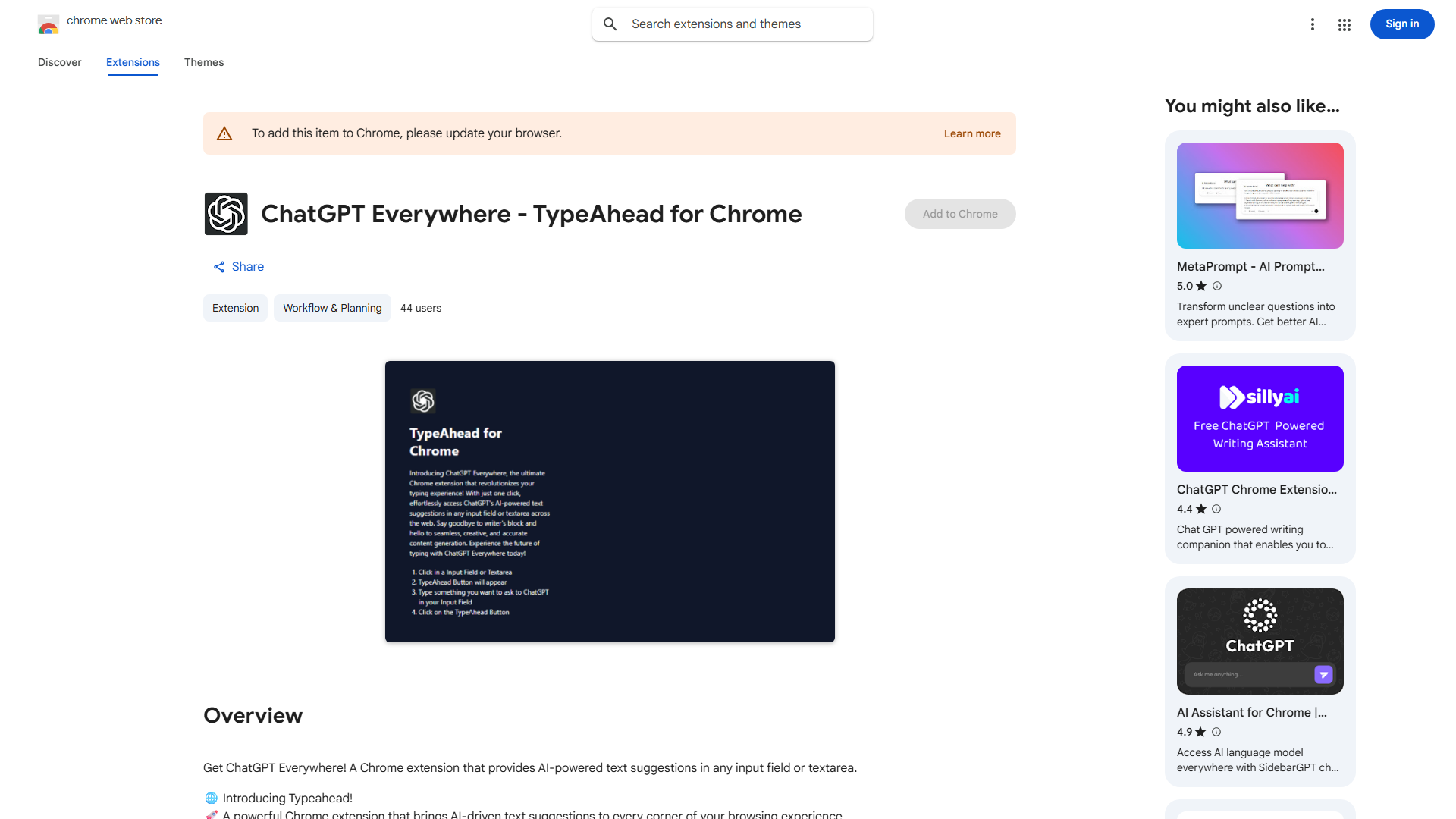 ChatGPT Everywhere! is a Chrome extension integrating OpenAI's ChatGPT into all web text fields. It eliminates tab switching, providing AI assistance for emails, posts, reports, and comments. Perfect for professionals, creators, and students seeking productivity boosts.