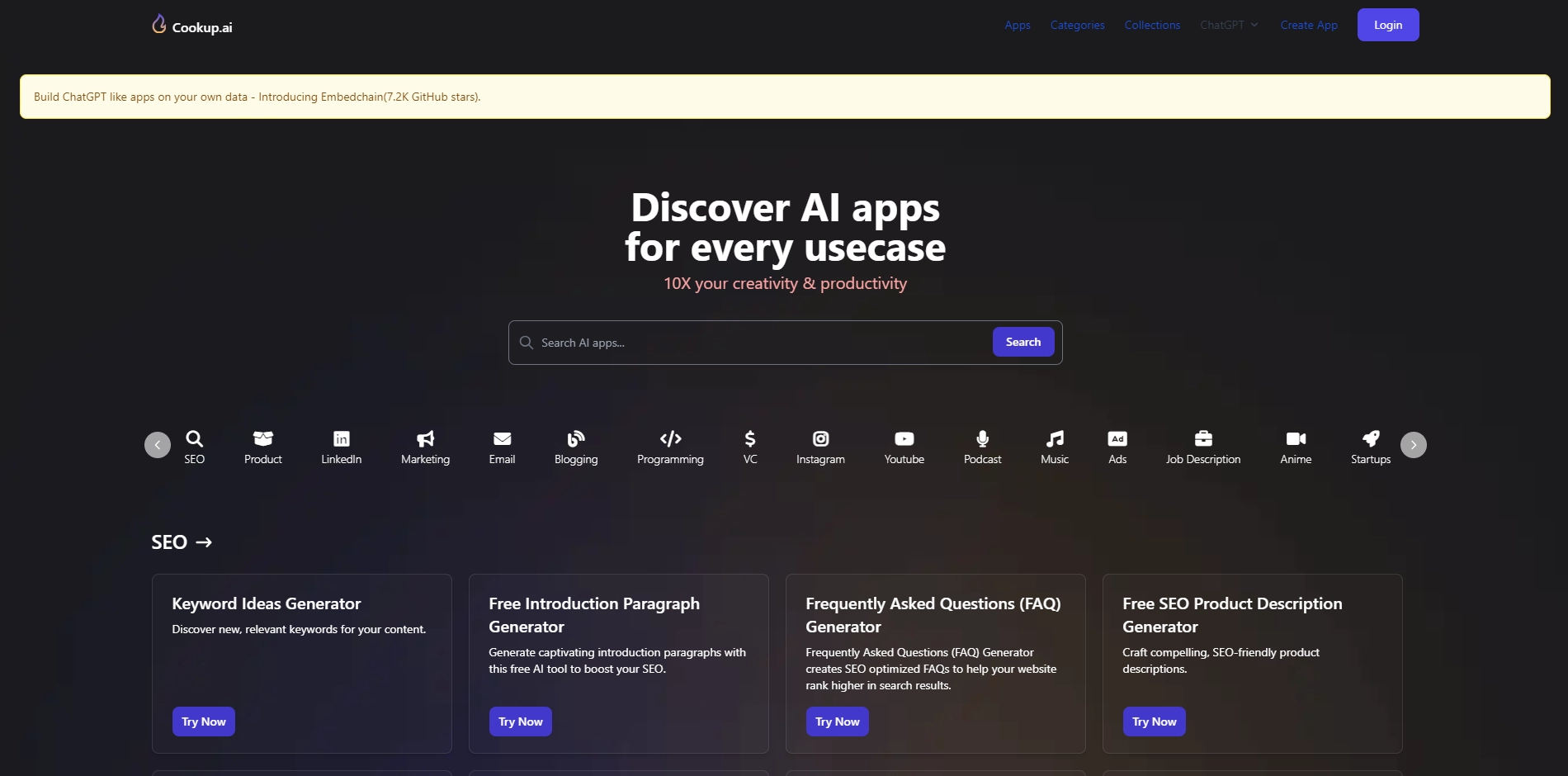 Cookup.ai is a comprehensive AI platform that empowers professionals and businesses to discover, access, and deploy specialized AI applications. As a curated marketplace of cutting-edge tools, it transforms workflows for content creators, marketers, SEO specialists, and entrepreneurs.