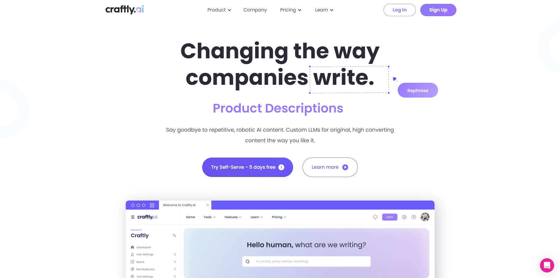 Craftly.AI is an AI-powered copywriting assistant that helps marketers, content creators, and businesses generate high-quality, engaging content efficiently across various platforms.