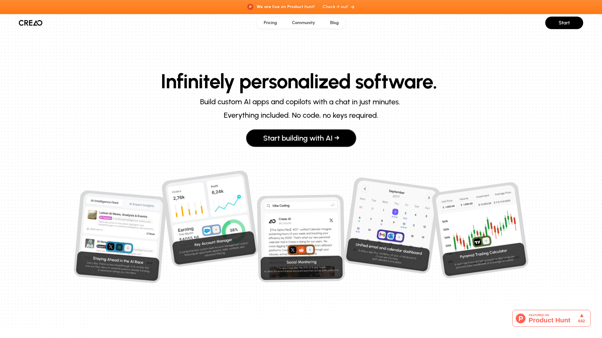 Creao AI is a cutting-edge platform enabling users to build custom AI applications and copilots using natural language processing. It democratizes AI development, making sophisticated solutions accessible to both technical and non-technical users for enhancing business operations and customer engagement.
