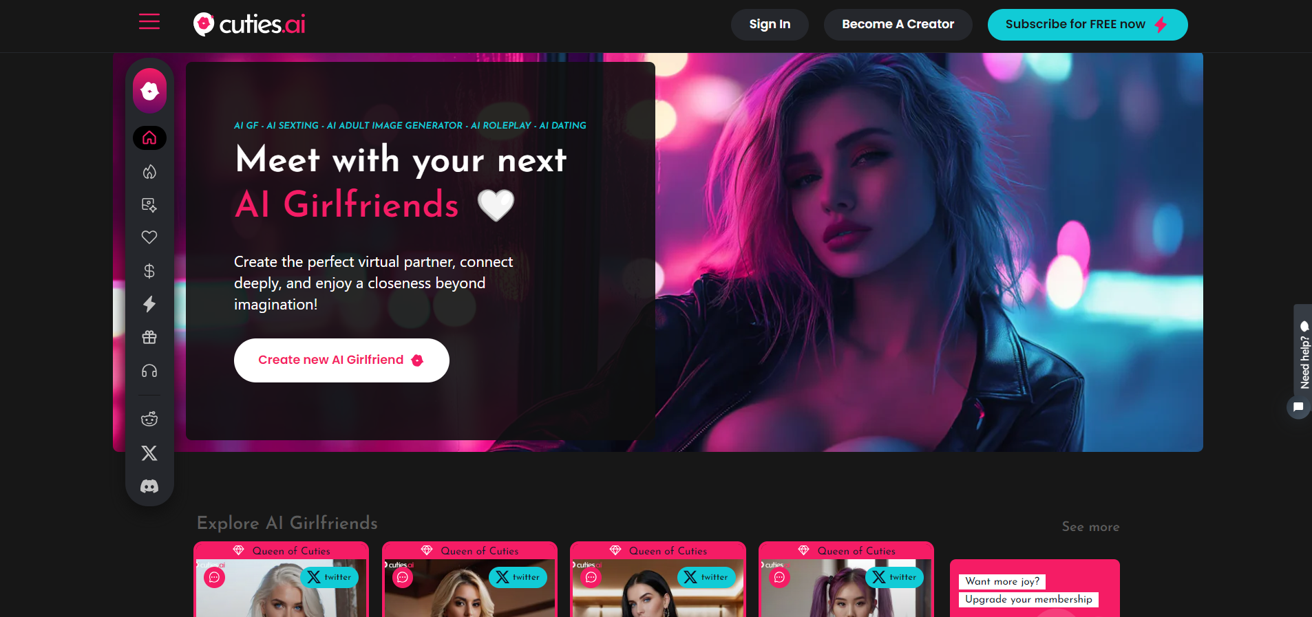 Cuties AI is an advanced platform for creating and interacting with personalized virtual companions. It allows users to craft unique characters with distinct personalities, appearances, and conversational styles for authentic digital relationships.
