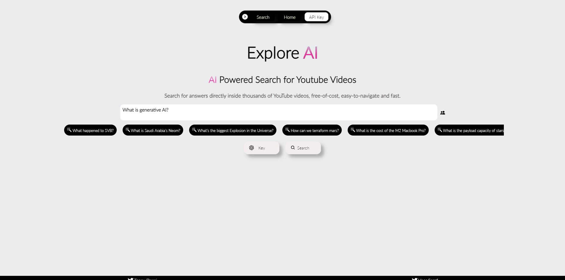 Enter your query in the search bar. Explore AI scans YouTube videos, analyzes transcripts, and highlights relevant moments. Click timestamps to jump directly to answers without watching entire videos.