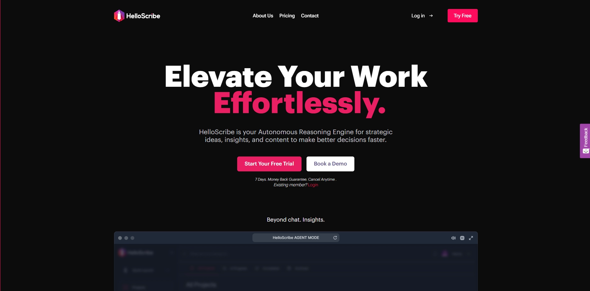 HelloScribe is an AI-powered writing assistant that helps busy professionals create high-quality content across marketing, blogs, social media, and creative writing projects.