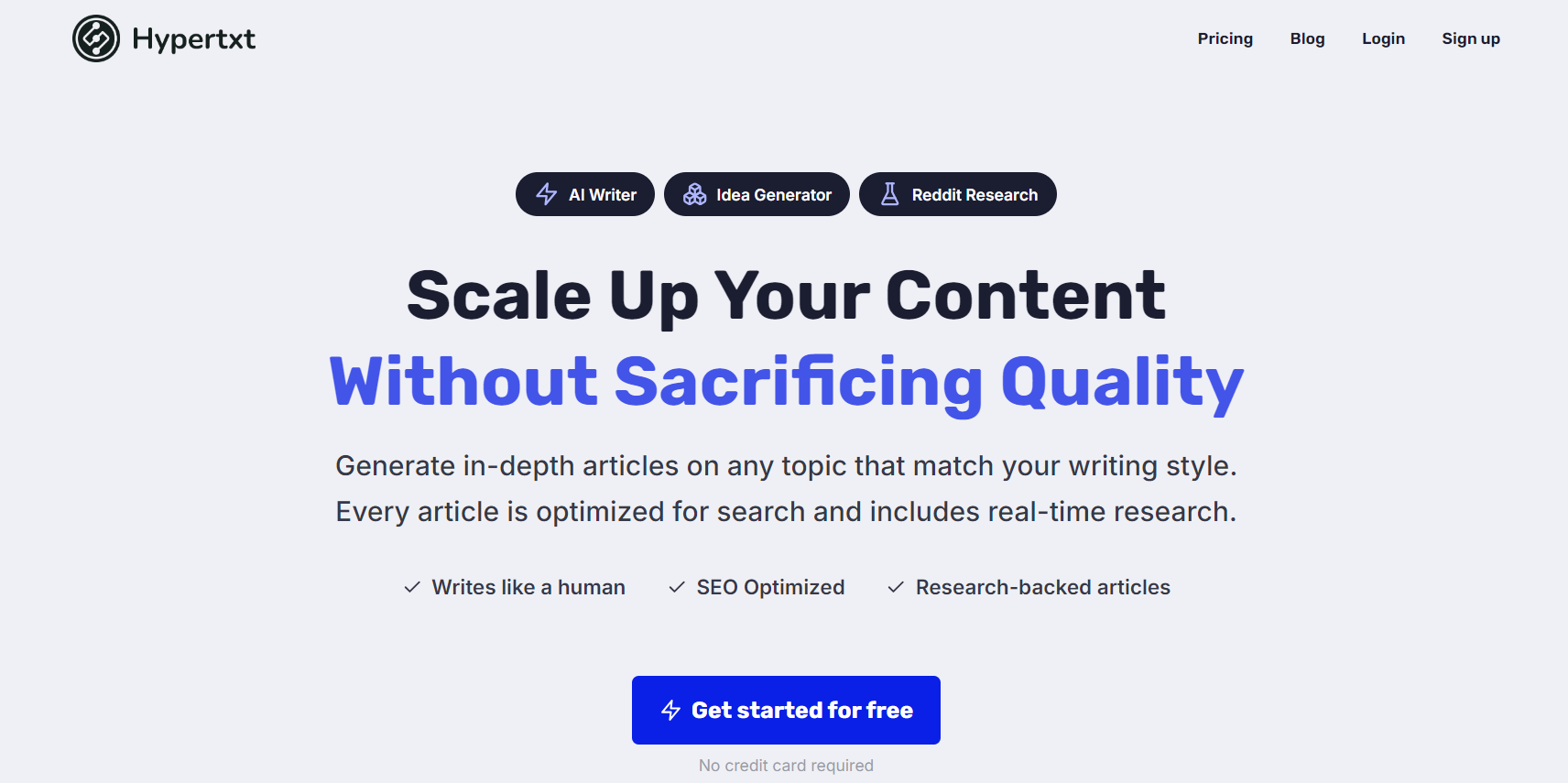 Hypertxt AI is an advanced AI article generator that produces professional-quality blog posts, articles, and marketing copy in minutes. It combines cutting-edge AI with intuitive design to help creators, marketers, and writers overcome time constraints and produce engaging, SEO-optimized content.