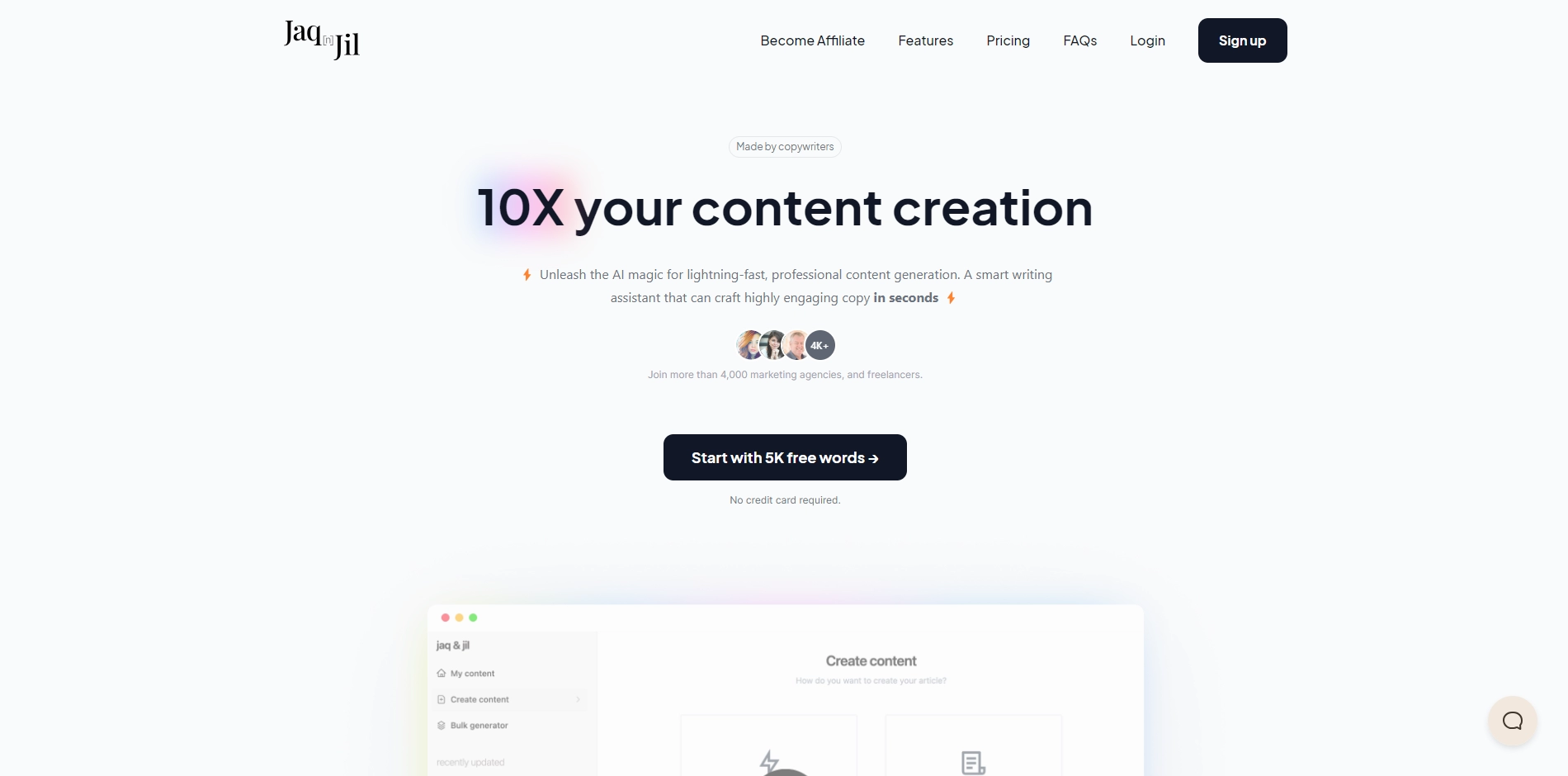 Jaqnjil is an AI-powered writing assistant that helps professionals, marketers, and students create high-quality content quickly. It generates SEO articles, social media posts, academic essays, and marketing materials with exceptional results.
