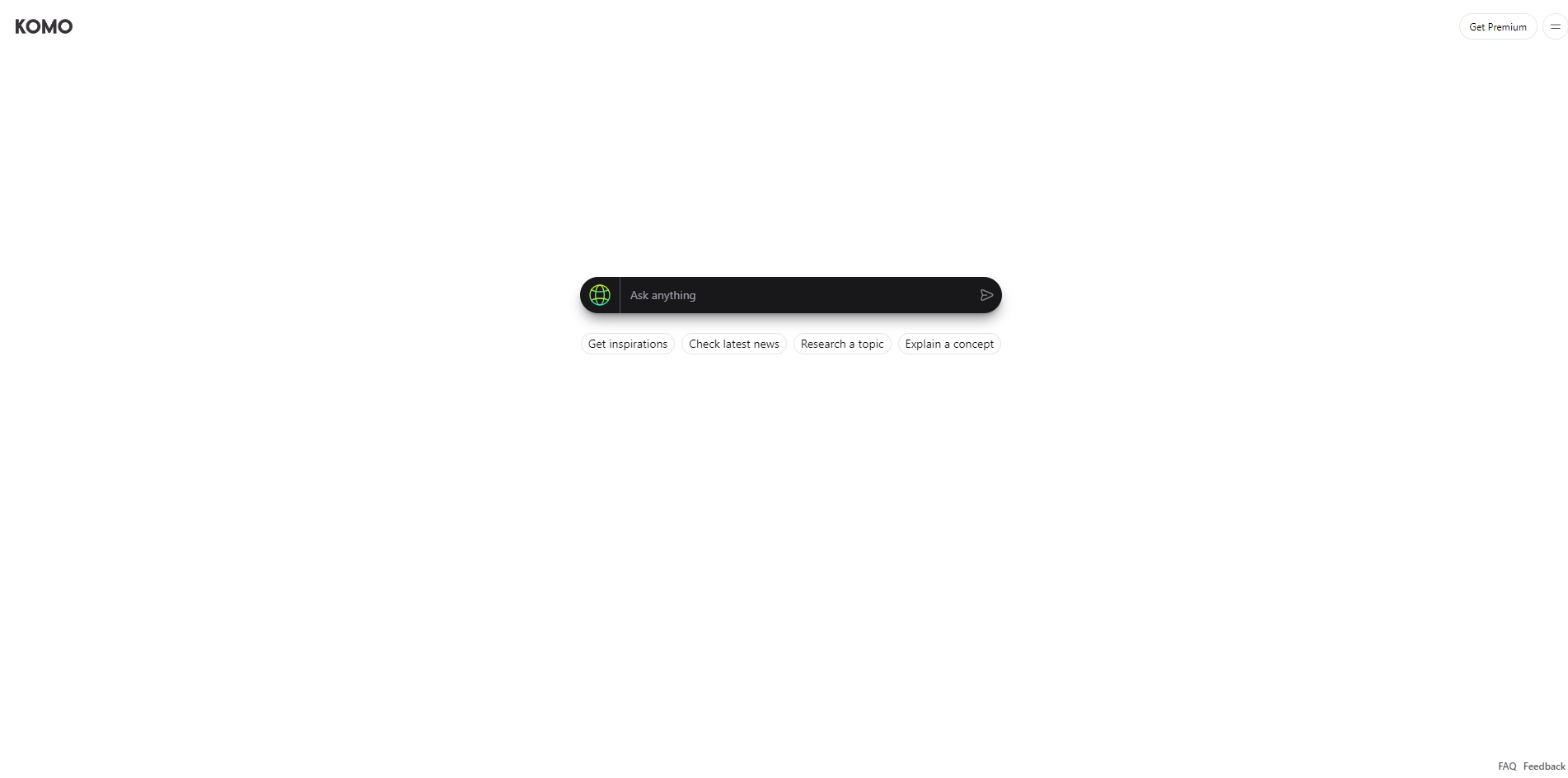 Simply enter your query in the search bar. Komo Search generates AI-powered responses instantly. For more detailed information, click "Explore More" to expand your results. Use conversation mode to ask follow-up questions and refine your search.