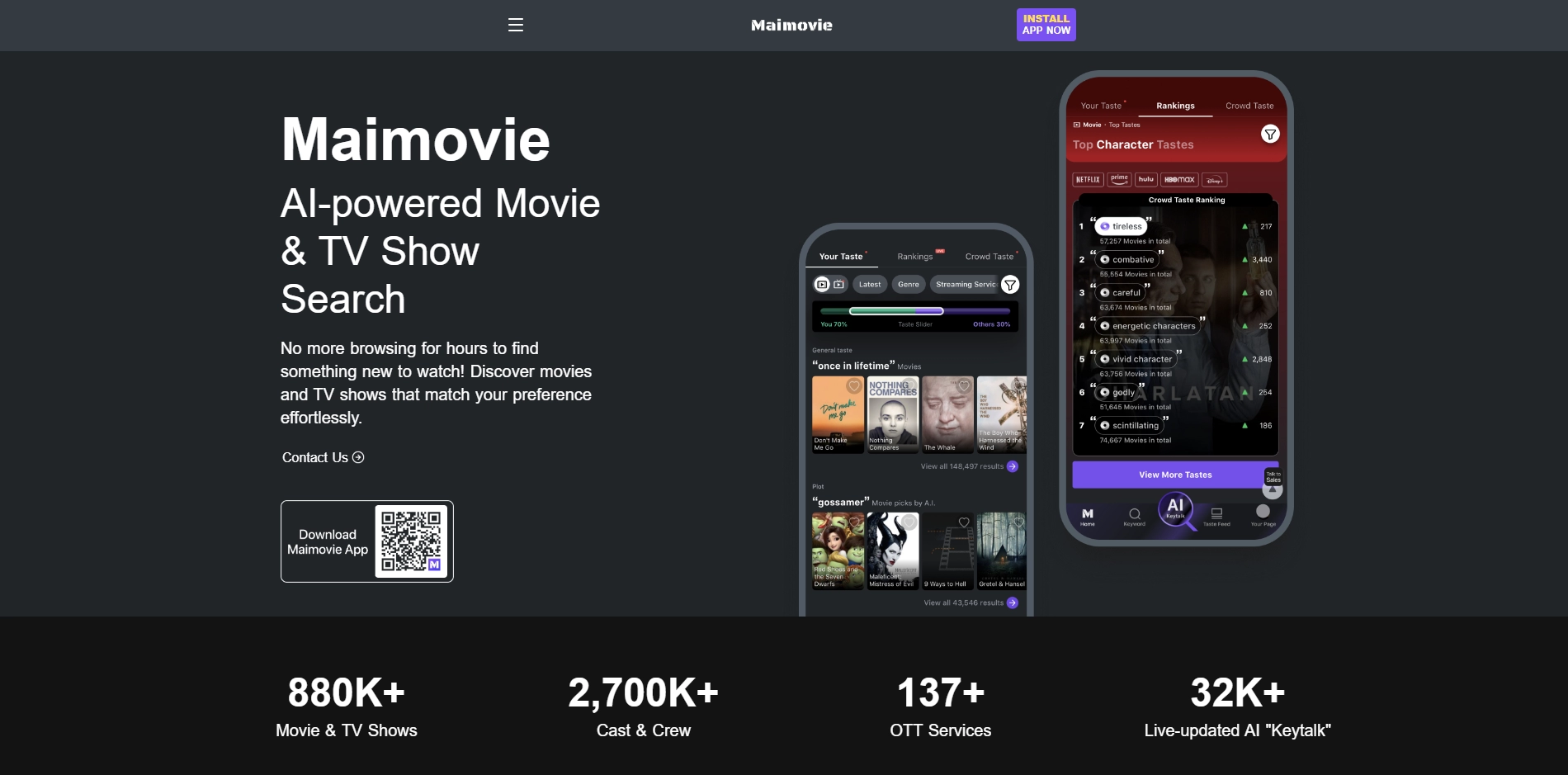 Maimovie revolutionizes movie discovery with AI-powered search that understands your unique preferences, delivering personalized content beyond generic algorithms.