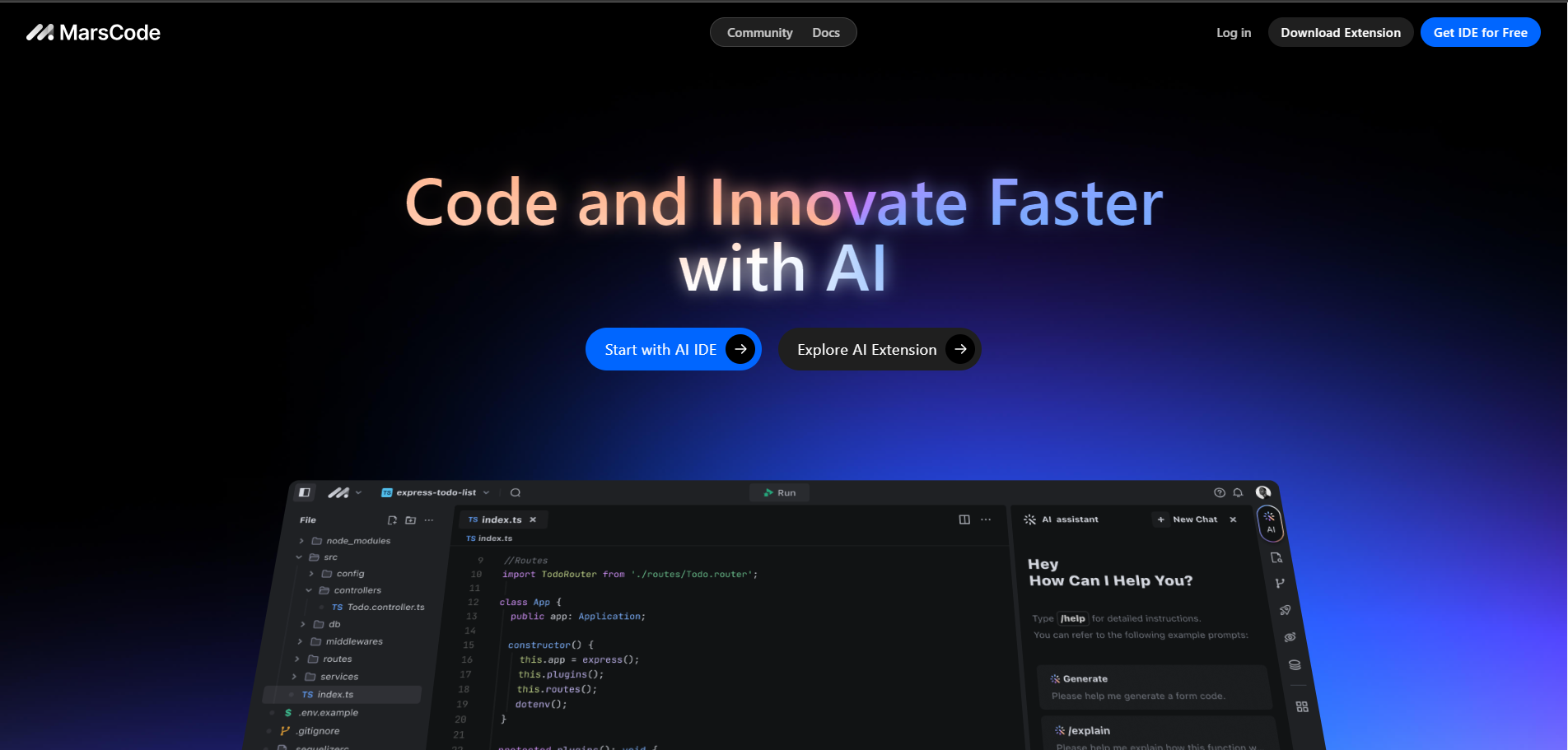 Install MarsCode extension in your IDE. Connect to your development environment. Start coding with AI-powered suggestions, accept completions with a single tap, and leverage debugging assistance. The platform automatically provides contextual documentation and optimization suggestions as you work.