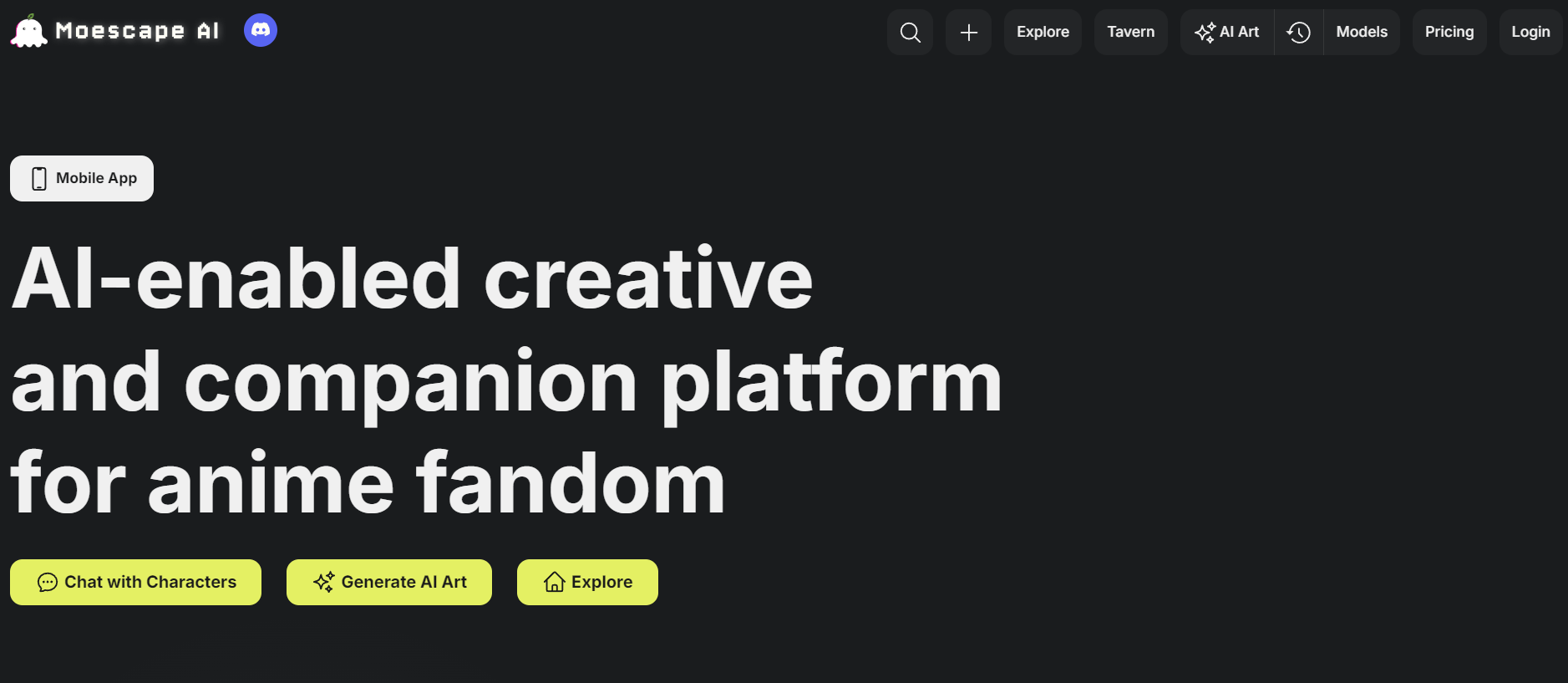 Moescape AI is an anime platform combining AI technology with fandom. It enables character conversations and generates anime art from text prompts, serving fans, artists, and creators.