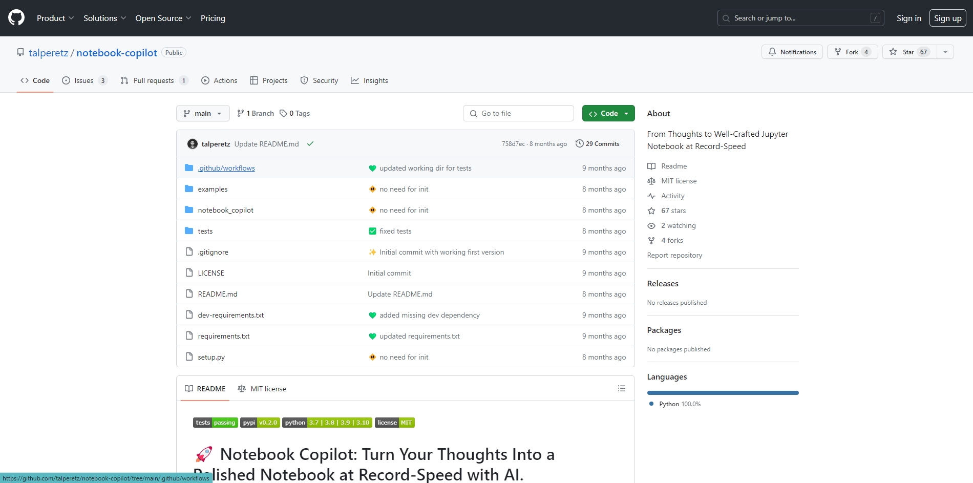 Notebook Copilot is an AI-powered assistant for Jupyter Notebooks that provides intelligent code suggestions, automatic documentation, and optimized data analysis patterns tailored to data scientists' needs.