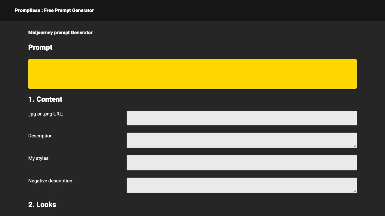 PrompBase is a revolutionary free prompt generator designed to inspire creativity and streamline visual and storytelling processes. This powerful tool empowers users to craft captivating visuals with customizable options tailored to individual needs.