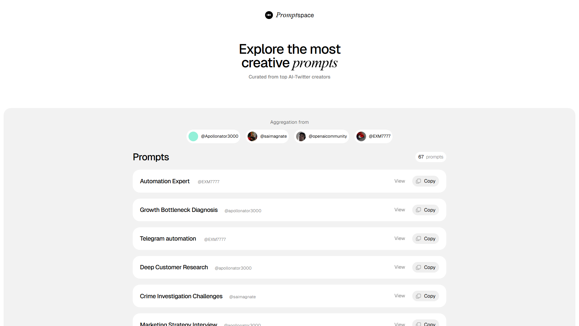 PromptSpace.xyz is a premier marketplace for buying and selling AI prompts, connecting creative minds with powerful AI models. Users discover, share, and monetize crafted instructions for generating visuals, text, and audio.