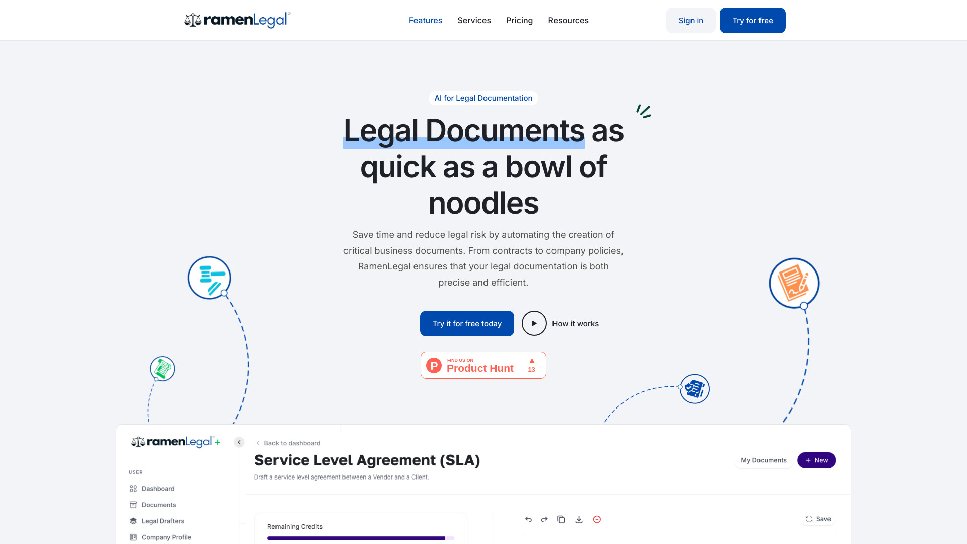 RamenLegal is an AI-powered platform that streamlines legal document generation, research, and analysis. It offers customizable templates and AI-driven suggestions for precise, compliant legal documents. Ideal for law firms, corporate legal departments, and solo practitioners.