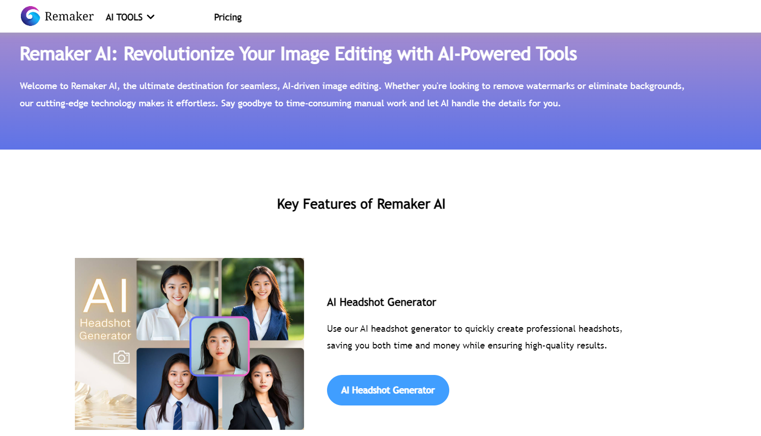 Remaker AI is an AI-powered content creation platform providing professional tools for image editing, avatar creation, background removal, and voice cloning. It transforms complex editing tasks into simple processes for creators of all skill levels.