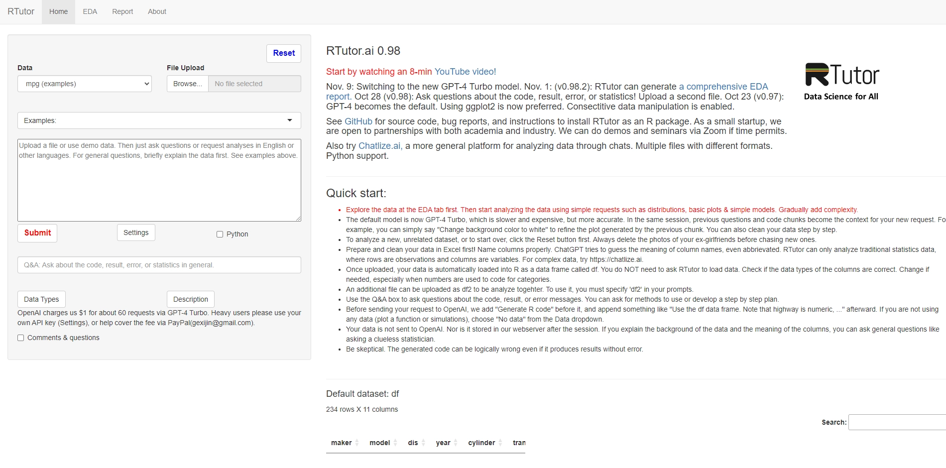 RTutor is an interactive web platform for learning R programming. It provides hands-on coding experiences that adapt to your pace, guiding users from fundamentals to advanced data visualization techniques.