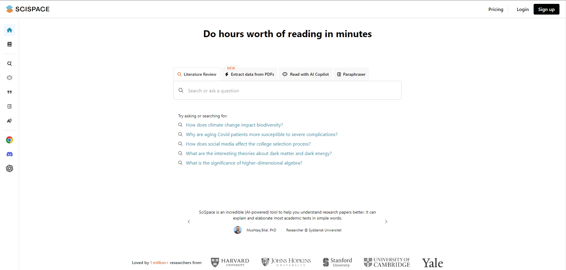 SciSpace is an AI-powered research assistant revolutionizing how scientists engage with academic literature. It enables researchers to upload, analyze, and interact with scientific PDFs through an intuitive AI chat interface.
