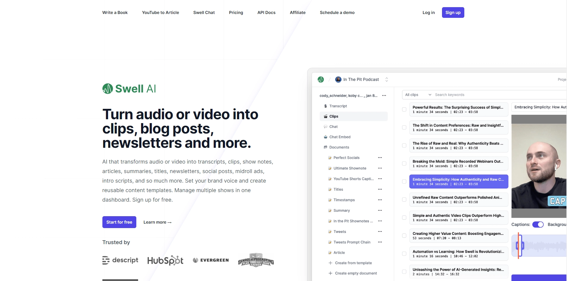 Swell AI is an AI-powered content creation platform that transforms podcast audio and video into ready-to-publish materials including transcripts, shownotes, blog posts, and social media content.