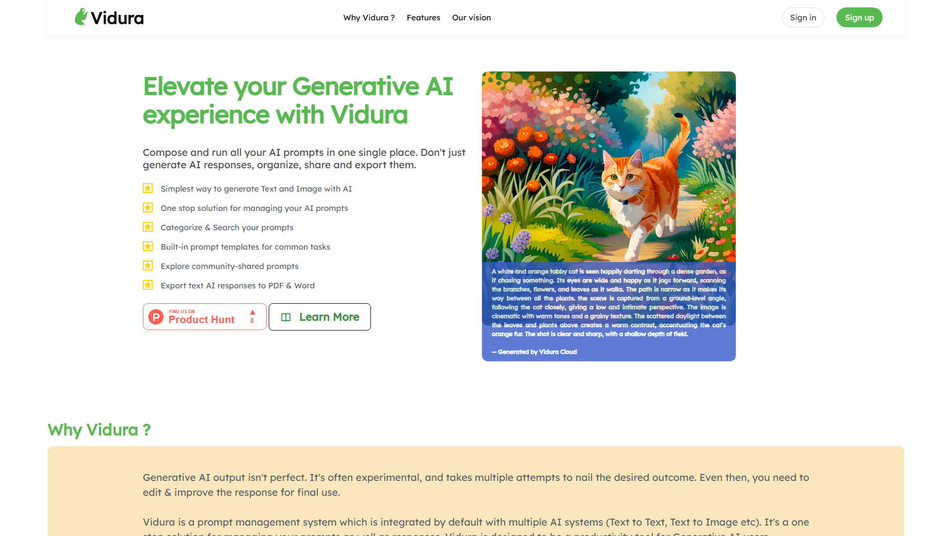Vidura AI is a revolutionary prompt manager designed for generative AI tools. It streamlines prompt creation and management, significantly enhancing AI model output for content creators, researchers, and developers seeking to maximize AI efficiency.