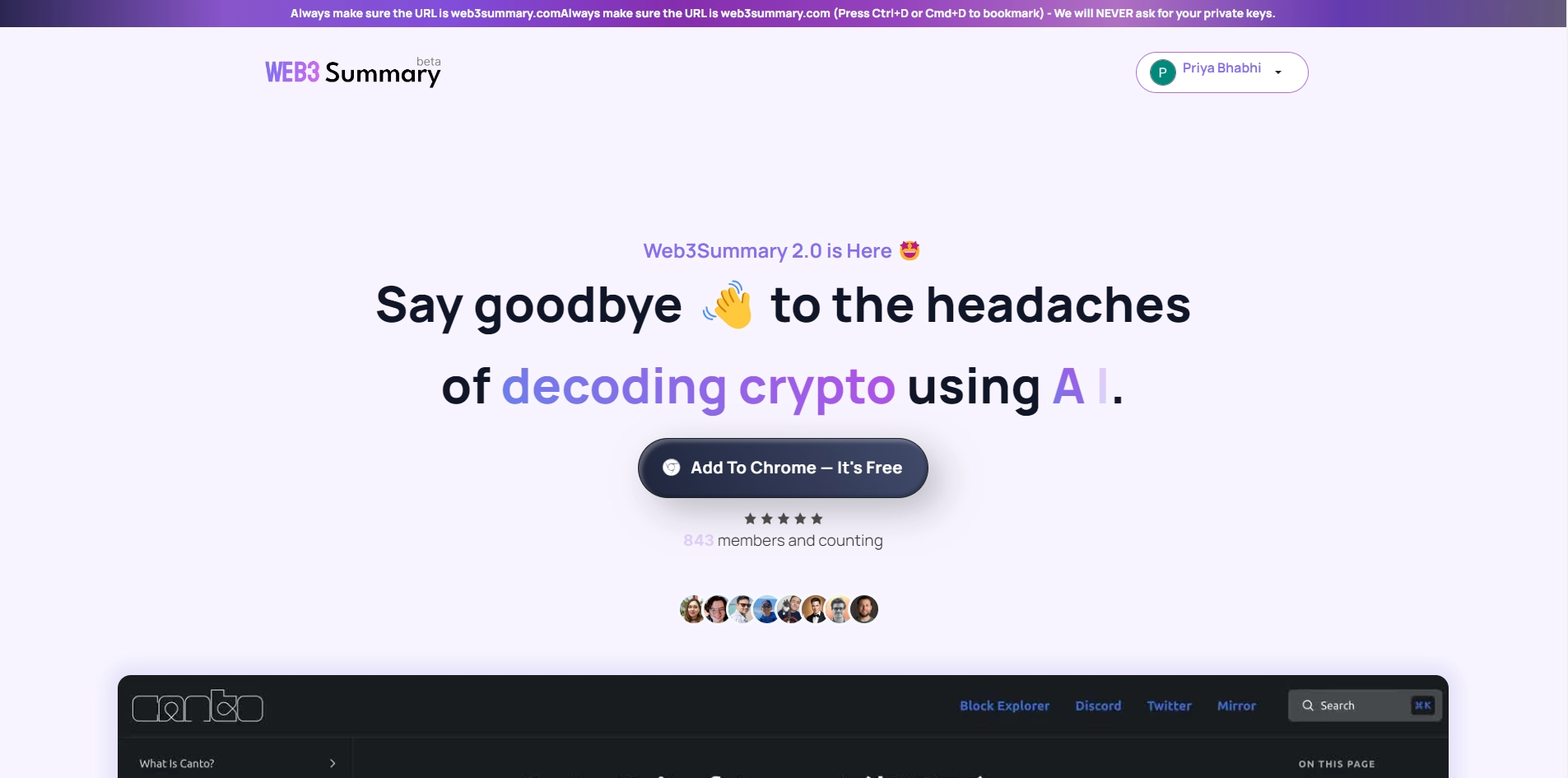 Browse or search for specific Web3 topics, view summarized information about blockchain concepts and crypto trends, save important insights, and set up notifications for updates on projects or topics that interest you.