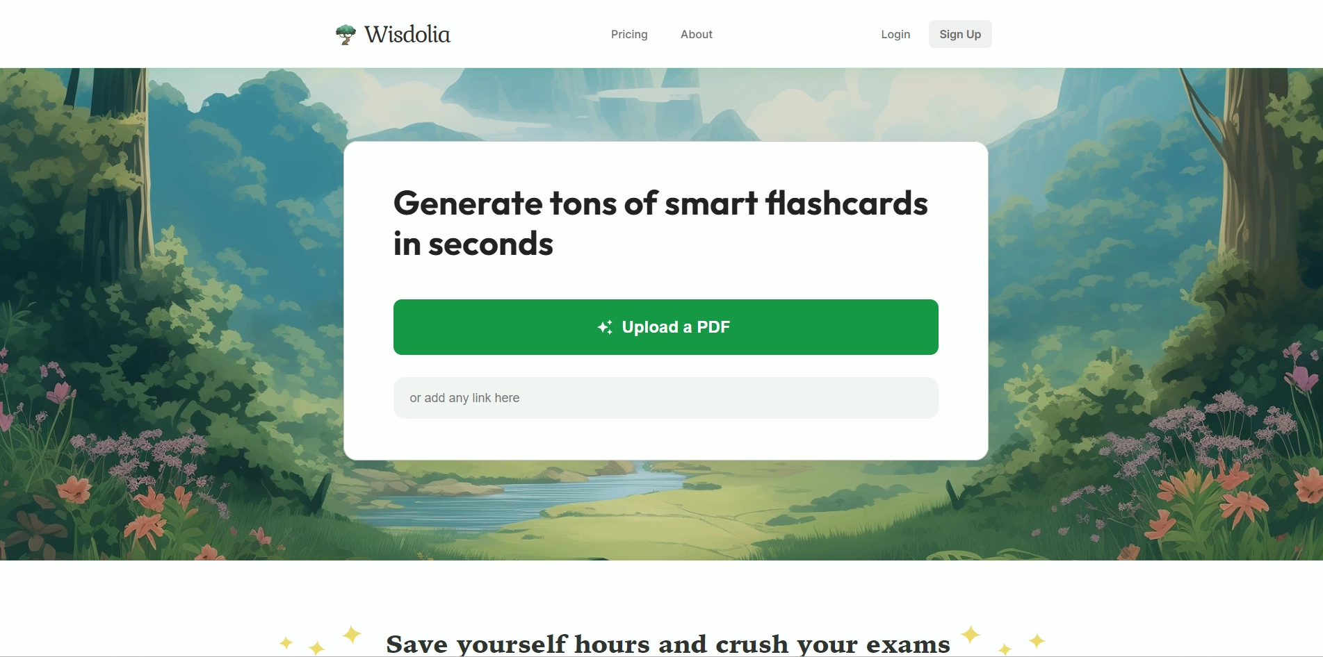 Wisdolia revolutionizes learning by transforming educational content into personalized flashcards. This innovative tool converts videos, PDFs, and other materials into interactive flashcards, making complex information easier to digest and remember. Perfect for students, professionals, and lifelong learners.